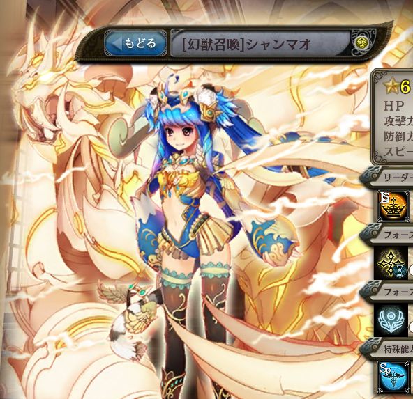 | 神掌・暴虎馮河 光属性の△△%全体攻撃。発動から3ターン後にスキルを放つ。 | 神掌・雷虎天翔 光属性の△△%全体攻撃。発動から3ターン後にスキルを放つ。 | ~~ ~~ |