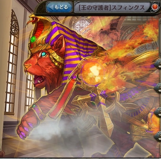 | バーニングロアー 火属性の【△△%】単体攻撃。 高確率で石化効果を付与。 | フレイムハント 火属性の【△△%】単体攻撃。 高確率で石化効果を付与。 | レオバースト 火属性の【△△%】単体攻撃。 高確率で石化効果を付与。 | |||||||||||||||||||||||||||