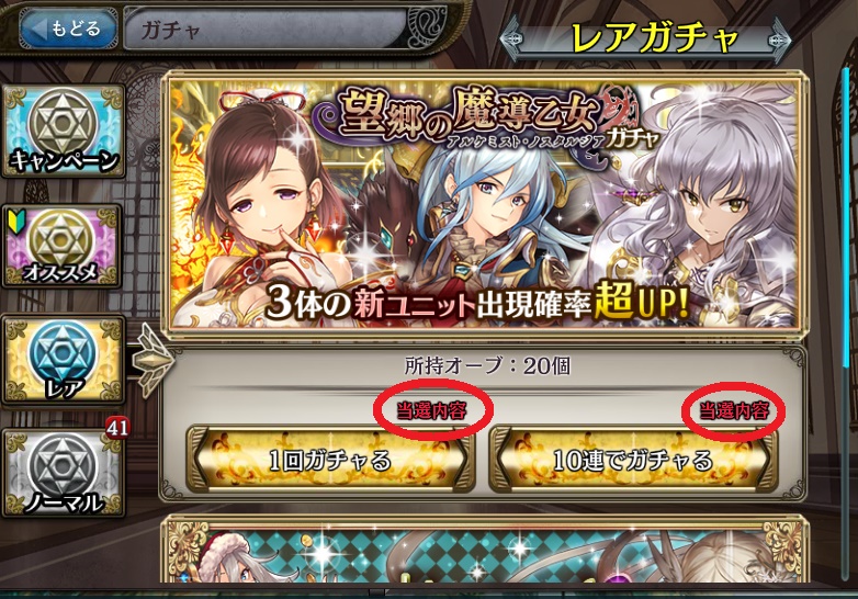 レアガチャから、どのユニットが出るかわからないんだけど?