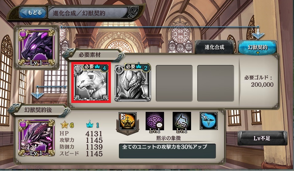 出来る限り、進化前に、FSのレベルは上げた方がいい。- 素材ユニットを「★3を5体」とした場合、