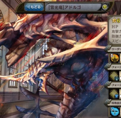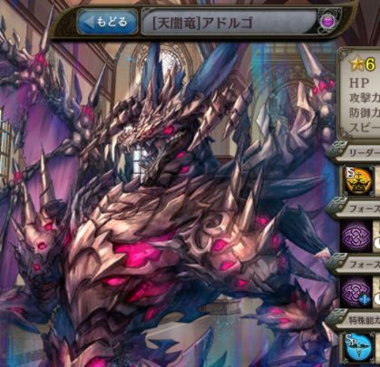 | ☆1~☆5 | 進化は無しで契約のみのため、素材集めが重要になる。(特に素材用のアドルゴは売ったり強化に使ったりしないよう注意) あくまでも☆6への通過点だが、☆3ぐらいから少しずつスキルレベルを上げておくと楽である。 | |