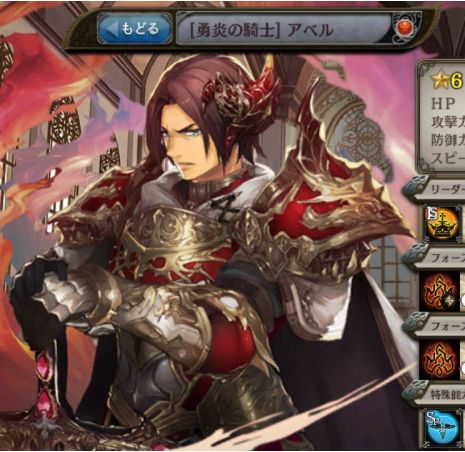 | 烈火の連撃 敵単体に火属性の△△%ダメージの防御無視8連撃。 クエスト開始時、CTが3。 | 勇炎の連撃 敵単体に火属性の△△%ダメージの防御無視8連撃。 クエスト開始時、CTが3。 |