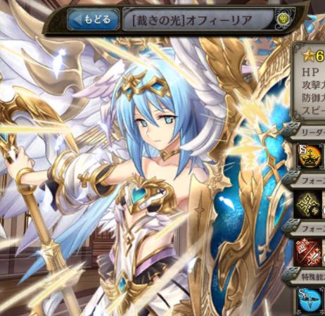 | 福音は夕暮れに響く 全てのユニットのクリティカル率を20%アップ | 聖歌は星雲に反響する 全てのユニットのクリティカル率を30%アップ | 天使は銀河の果てに座す 全てのユニットのクリティカル率を30%アップ | 翼は銀河の光を放つ [光属性かつ神]のユニットの スキル攻撃力を55%アップ |