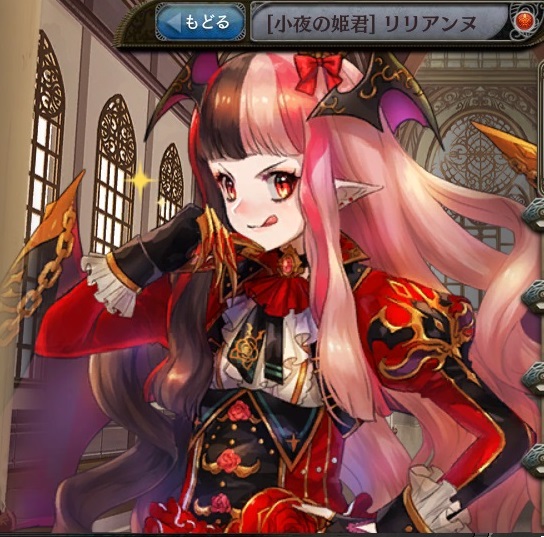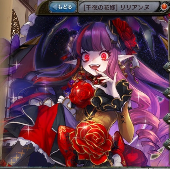 | 契約2 | 再生とボルテージを追加し、パワーアップしたリリアンヌ。 スキルは契約1と比べて、防御無視攻撃が単体攻撃から単体5連撃になりより使いやすくなった。 LSも火属性ユニットのみだがダメージを軽減できるため、火パーティでは心強い。 ただしボルテージ持ちのため初期の攻撃力は低め。長期戦には向いているが、短期戦では火力が上がりきらないので注意。 | |