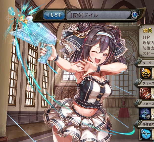 | 初めての夏 火属性の敵から受けるダメージを25%軽減 | 忘れられない夏 火属性の敵から受けるダメージを25%軽減 | とびっきりの夏 火属性の敵から受けるダメージを25%軽減 |
