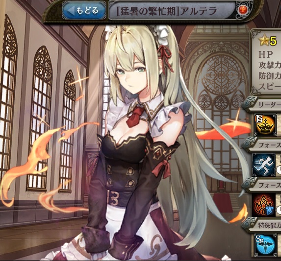 | 夏中忙殺の悲劇 火属性のユニットの攻撃力を40%アップ | メイドの心得 火属性のユニットの攻撃力を40%アップ | サマーバケーション 火属性のユニットの攻撃力を40%アップ |