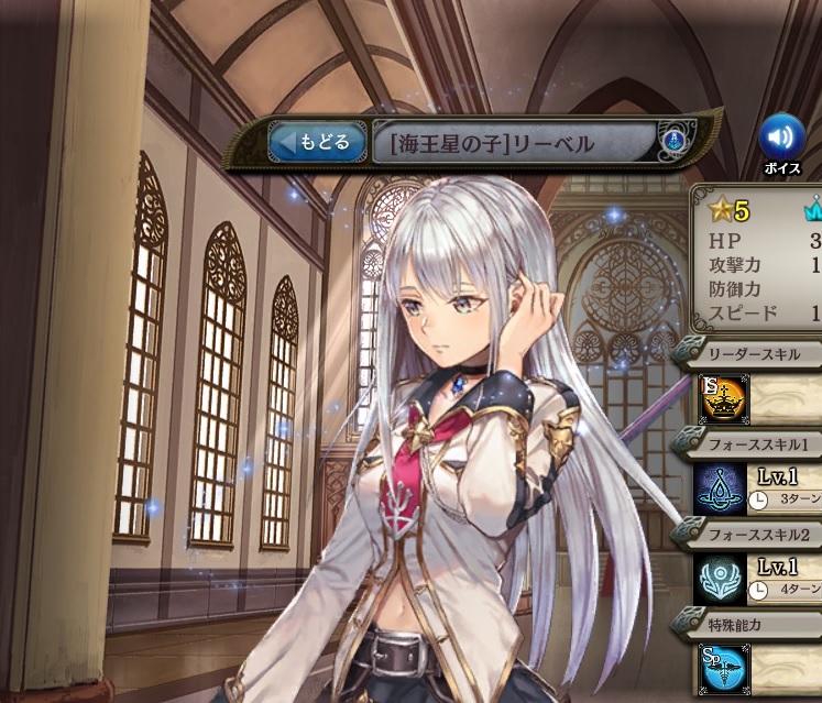 | 蒼き海の恵み HP25%消費し、味方単体を戦闘不能から全回復して復帰する。 | 蒼き海の涙 HP25%消費し、味方単体を戦闘不能から全回復して復帰する。 | 蒼き海の哀憐 HP25%消費し、味方単体のスキルクールタイムを△△ターン短縮する。 |