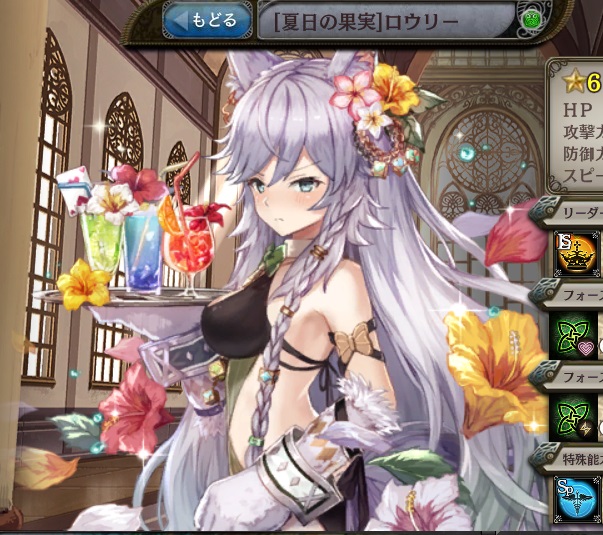 | 慣れないサービス [追撃]持ちユニットの攻撃力を40%アップ | 全然できないウインク [追撃]持ちユニットの攻撃力を40%アップ | 滅多に見られないスマイル [追撃]持ちユニットの攻撃力を40%アップ |
