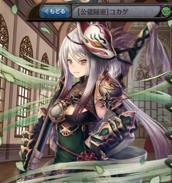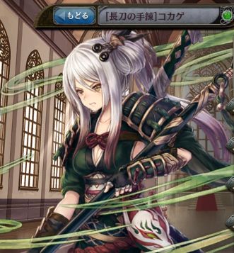 | ~~(スキル名) 樹属性の防御無視した△△%全体攻撃。発動から3ターン後にスキルを放つ | くノ一の極意 樹属性の防御無視した△△%全体攻撃。発動から3ターン後にスキルを放つ。 | くノ一の奥義 樹属性の防御無視した△△%全体攻撃。発動から3ターン後にスキルを放つ。 |