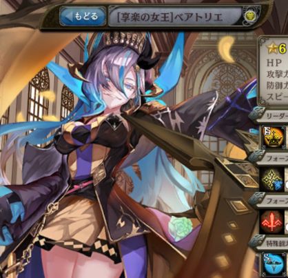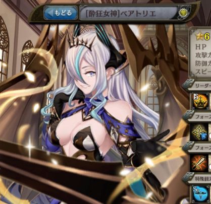 | 無邪気な囁き 味方単体のクリティカル率を1ターンのみ△△%アップ。 | 女神の蠱惑 味方単体のクリティカル率を1ターンのみ△△%アップ。 | 女王の魅惑 味方単体の攻撃力を1ターンのみ△△%アップ。 |