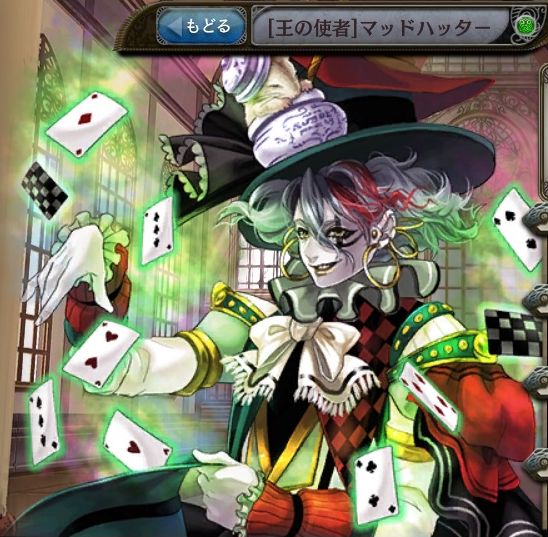 | 備考 おすすめ育成法 | 特徴 | マッドハッターは回復スキルが特徴!特殊能力:シーフキラーは幻獣【バンダースナッチ】への攻撃力が最高1.7倍!進化で攻撃力が最高2倍! |