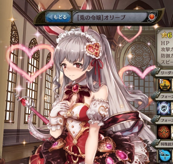 | 令嬢の覚悟 4属性以上の編成の時、全てのユニットのスピードを35%アップ | 淑女の覚悟 4属性以上の編成の時、全てのユニットのスピードを35%アップ | バニーの覚悟 4属性以上の編成の時、全てのユニットのスピードを35%アップ |