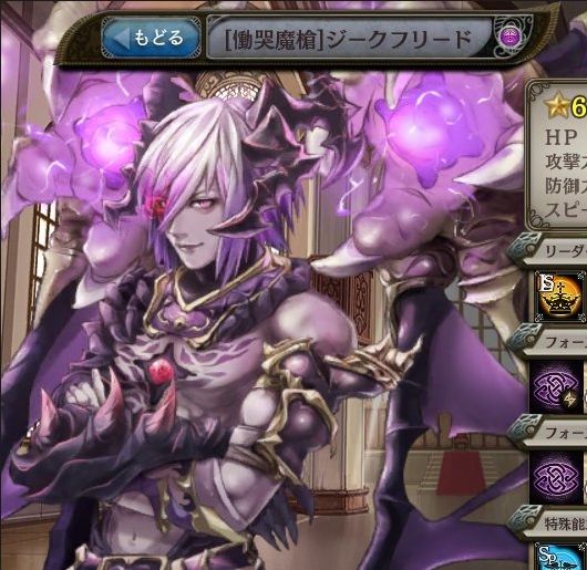| 備考 おすすめ育成法 | 特徴 | スキル1『魔槍』は闇属性の単体攻撃、スキル2『ブラッドストーム』は闇属性の全体攻撃+中確率で麻痺効果を付与! |