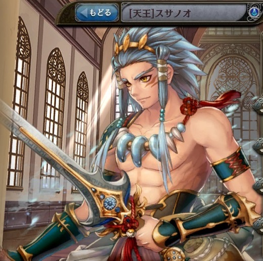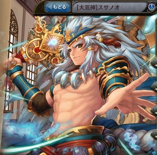 | ユニット設定 | 海原を司る男神。アマテラス、ツクヨミの弟に当たる。母親を失った悲しみから、周りが見えなくなり、姉のアマテラスと対立することとなる。 | |