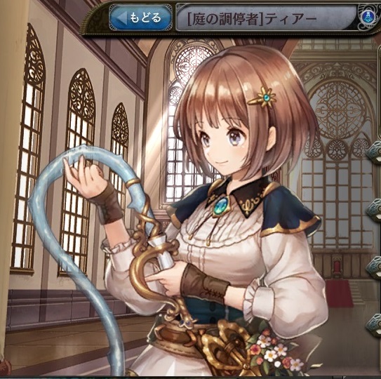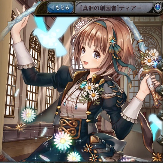 | グラススプリンクル HP25%を消費し水属性の【△△%】全体攻撃。高確率で攻撃力を30%ダウン。 | フローラルカスケイド HP25%を消費し水属性の【△△%】全体攻撃。高確率で攻撃力を30%ダウン。 | セイクリッドガーデン HP25%を消費し水属性の【△△%】全体攻撃。高確率で攻撃力を30%ダウン。 |