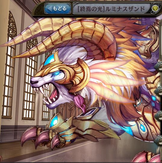 | 光神獣の一撃 光属性の△△%単体攻撃。 中確率で麻痺効果を付与。 | 終焉の一撃 光属性の△△%単体攻撃。 高確率で麻痺効果を付与。 | 終焉の光 光属性の△△%単体攻撃。 高中確率で麻痺効果を付与。 |