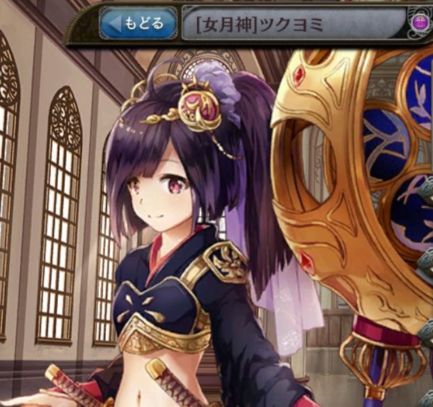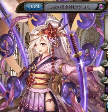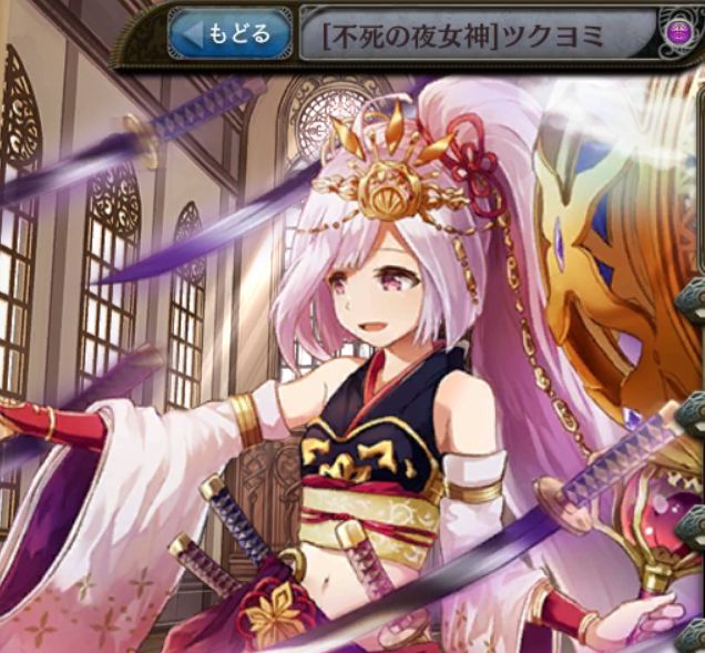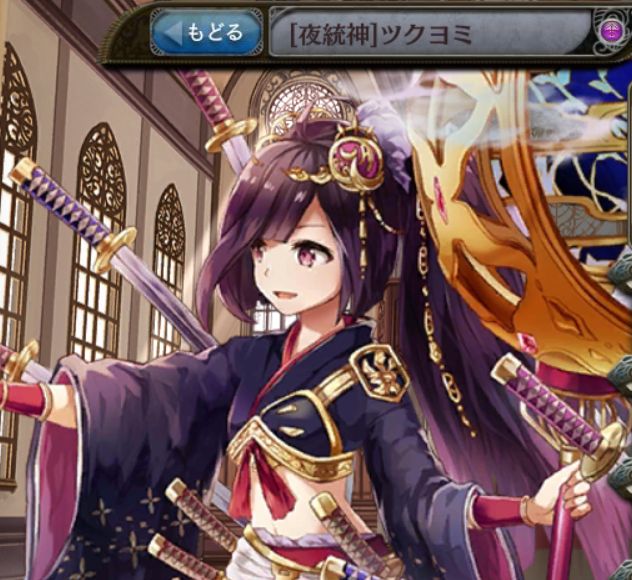 | ユニット設定 | 月と夜を司る女神。アマテラス、スサノオの姉。おっとり、のほほん、マイペースな性格。対立する妹と弟に挟まれる存在だが、天然なため、重く捉えていない。 | |
