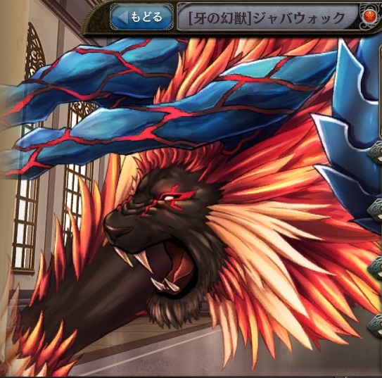 | 喰らいつく顎 火属性の【△△%】単体攻撃。 中確率で攻撃力を30%ダウン。 | 引き掴む鉤爪 火属性の【△△%】単体攻撃。 中確率で攻撃力を30%ダウン。 | 錐穿つ暴牙 火属性の【△△%】単体攻撃。 中確率で攻撃力を30%ダウン。 | |||||||||||||||||||||||||||