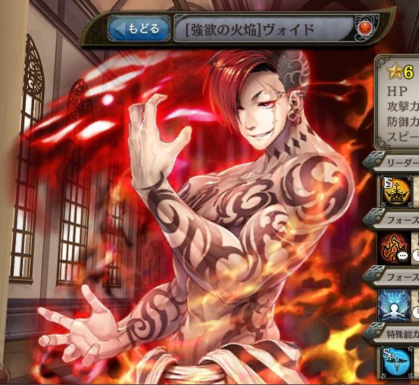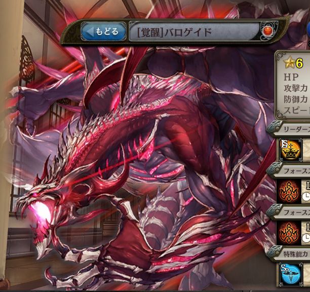 | 無 | 禁忌の変貌 3ターンの間、自分自身が覚醒する。 | 残忍なる爪撃 HP50%消費し、火属性の20~30回連続攻撃。 防御力を無視してダメージ。 |